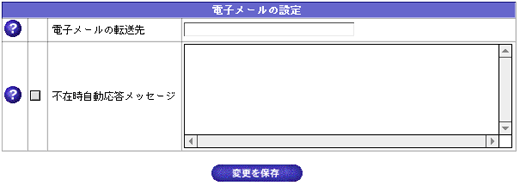 ここでは、電子メールの転送先、不在時の応答メッセージを設定することができます。